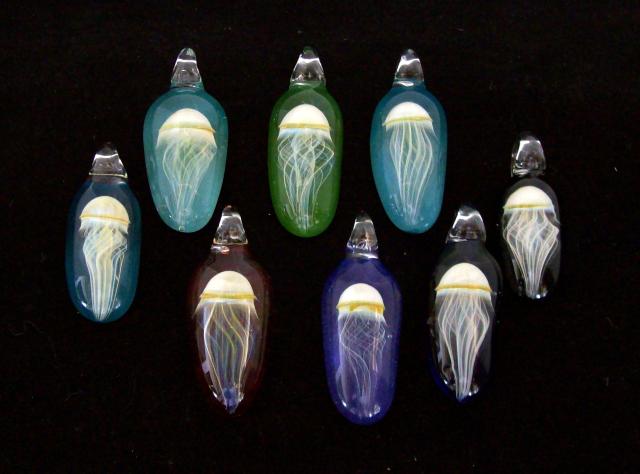 You will be asked "IS THAT A REAL JELLYFISH?" These beauties (Jellyfish #1 shown as a group and Jellyfish #2 shown as a Sideways Swimmer) take about 2 years of practice to perfect. No two are ever the same and the average size is 1 1/2 " long including the loop.