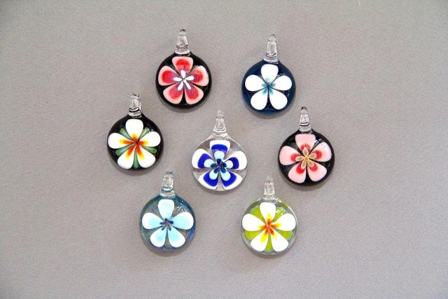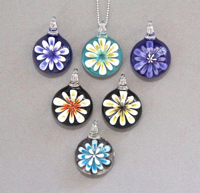 FLOWERS are made from Borosilicate Glass by our Lampwork Artisians. They are beautiful as a choker or longer necklace. Bead hobbiests make gorgeous works with the Flower Pendants. The approximate size of a tear drop shaped flower is 2".