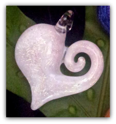 Our Curly Dichroic Hearts are popular all year round and come in White, Pink, Red, Lavender, Purple, Lapis, Light Turquoise, Aqua, Orange, Mint Green and Emerald Green. They look Amazing on our Sterling Silver Wavy Chain or a Black Cord.
